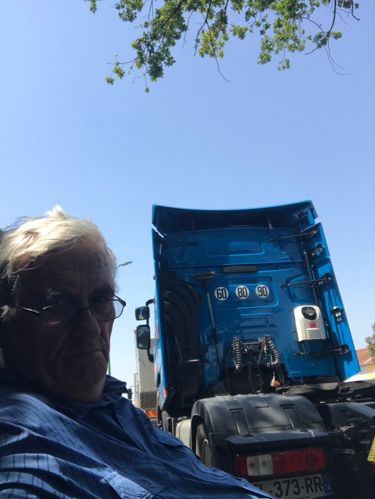 Je décide de m’accorder une pause mais il faut trouver de l’ombre et après avoir persévéré dans l’effort, je repère une petite zone d’ombre derrière d’un camion à l’arrêt. Je sors mon fauteuil (ai-je déjà dit que j’avais un fauteuil pliable ?) et je m’installe sur le bord de la route pour me laisser refroidir et me faire du bien. Mais était-ce bien nécessaire ?