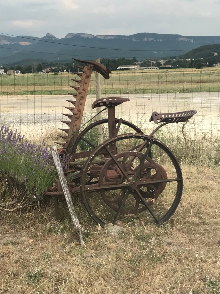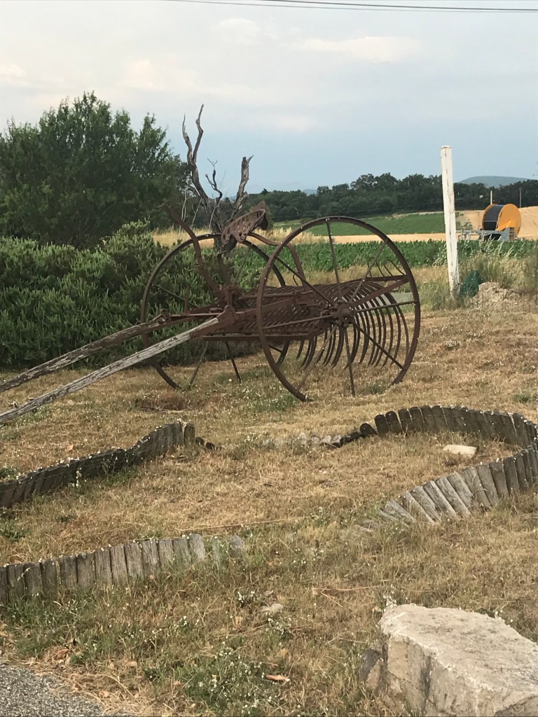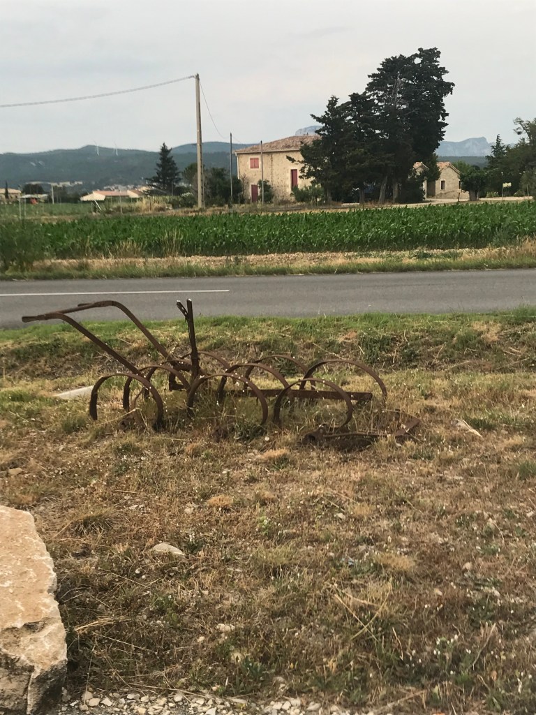 Sur le chemin du retour, ces instruments agricoles du passé, tirés par un cheval, d’une époque bien révolue. Les premiers lauriers en fleurs. L’air est doux et léger. Demain, je rends visite à madame de Sévigné en son château de Grignan. Puis, je vise Puyméras, où je retrouverai deux de mes frères et où la blonde dont je partage la vie, me rejoindra. Après ? Après on verra.