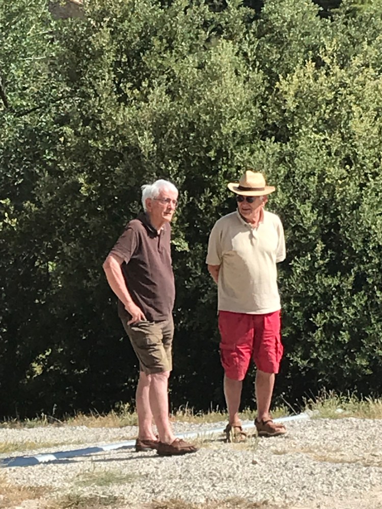 Les conversations tantôt légères, tantôt graves, en agréable compagnie : ma blonde arrivée hier en voiture toute fière d’avoir maîtrisé seule, en une seule étape, tous le défis de ce long trajet depuis Bruxelles ; mes frères, Marc et Emmanuel et leurs épouses, Marianne et Béatrice et plus tard, Michel, le frère de Marianne. Pour vivre, nous avons besoin d’air, d’eau et de liens avec nos semblables. Avoir une famille qui permet ces liens est une grande chance. Je mesure la mienne d’avoir une fratrie attentive et bienveillante. Tout au long de mon parcours sous la canicule, j’ai reçu de nombreux sms de mes frères préoccupés et s’inquiétant de me savoir toujours vivant.