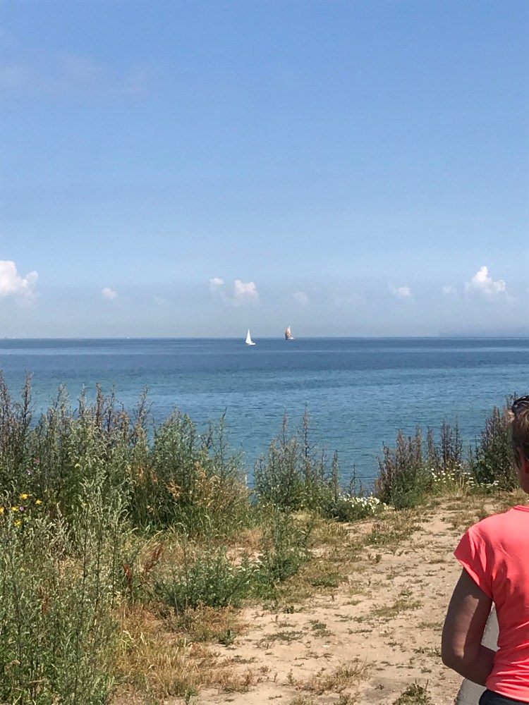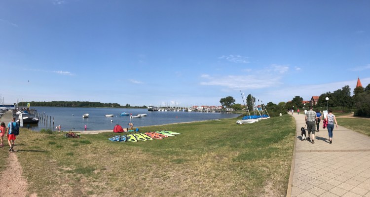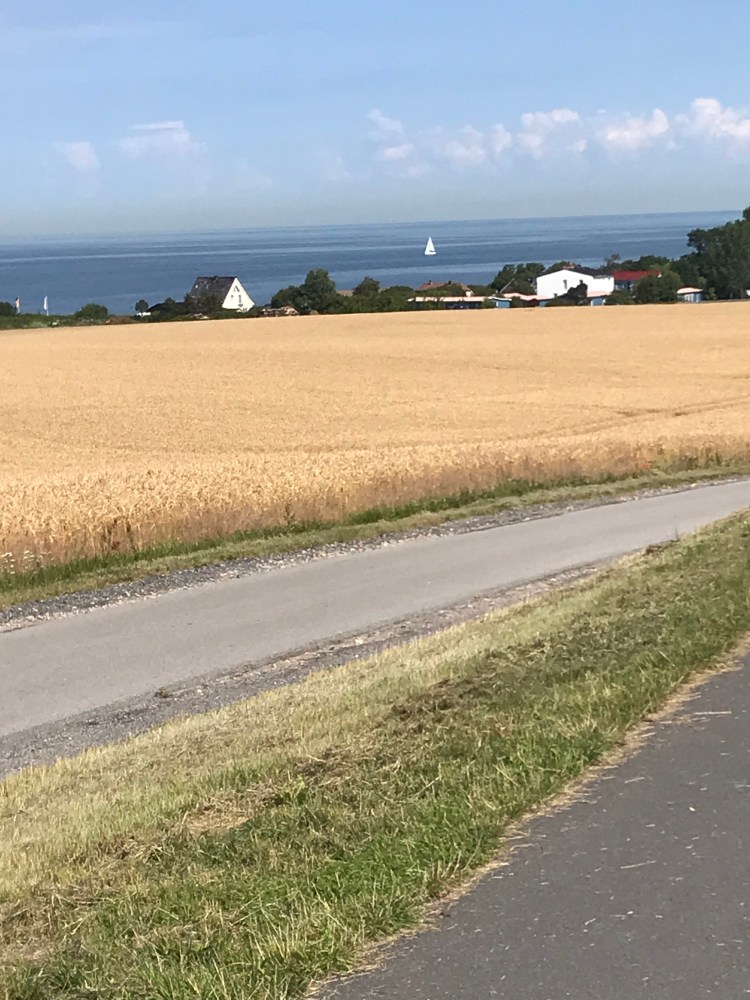 Il fait beau, comme la météo l’avait annoncé. Nous profiterons donc de cette journée puisqu’on annonce un ciel plombé pour les jours suivants. Une petite visite du village où nous avons dormi (en particulier de son église du 13eme, en briques comme toute les églises de la Baltique allemande) et nous voici en route, les mollets gonflés à bloc. Nous découvrons la Baltique balnéaire avec ses longues plages de sable blanc, des paysages de campagnes bordées par la mer baltique (Ostsee pour les peuples du nord).