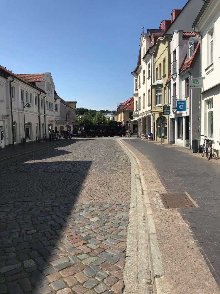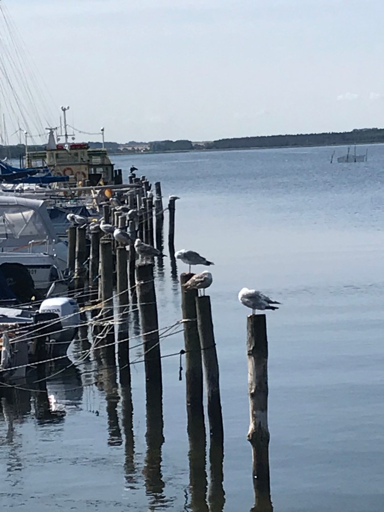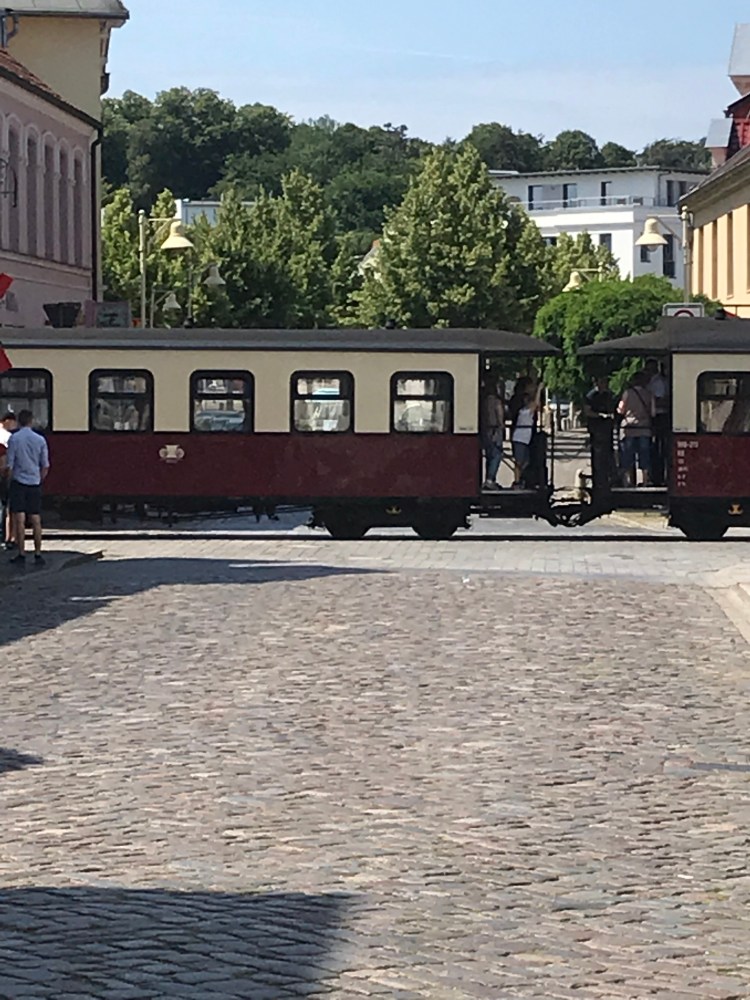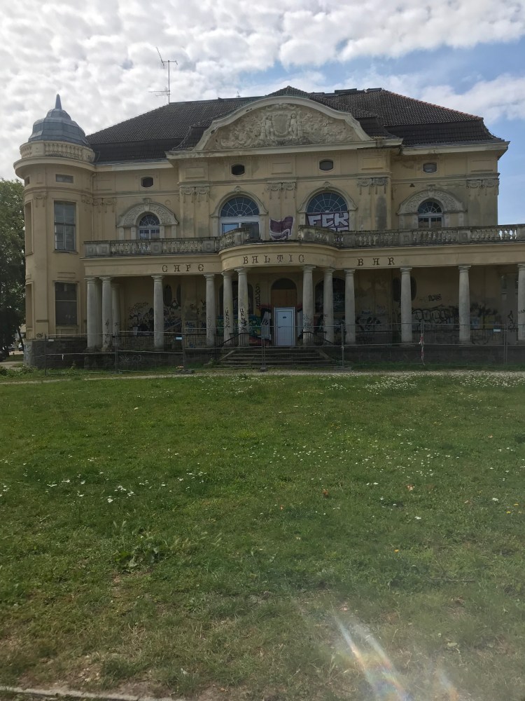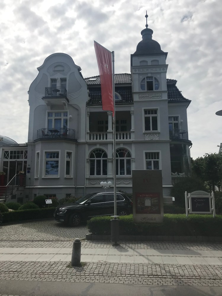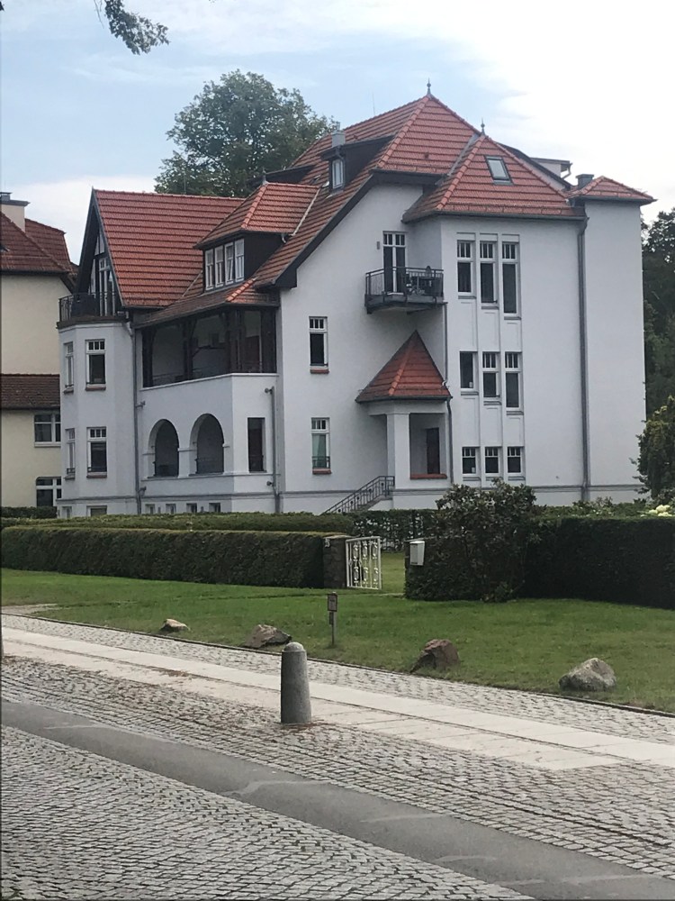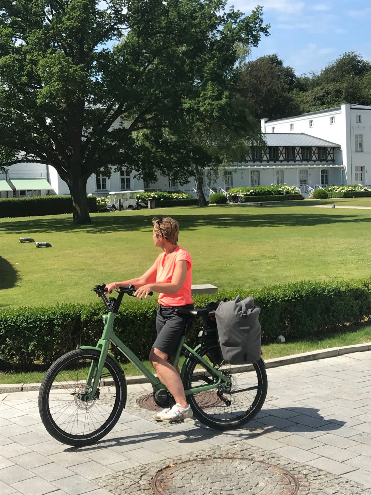 Nous passons par Kulungsborn, lieu de villégiature apprécié de la haute bourgeoisie dans l’entre deux guerres, tombé en léthargie sous le régime communiste et bien rénové depuis. Du régime communiste, restent encore des routes constituées de plaques des bétons aux joints inégaux provoquant de petits chocs rythmés comme si l’on conduisait un train… Nous passons trop rapidement par Heiligendam où se trouve le prestigieux « grand hôtel » où se tint un G20 en 2009. C’est dire s’il est grand et prestigieux. Nous y faisons un petit tour avec la désagréable sensation de ne pas être en harmonie avec l’environnement. Nos vélos moustache sont prestigieux certes, mais moins que les Tesla, les Porches et les Ferrari.
