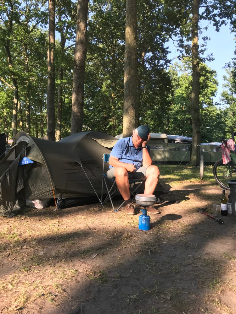 Ensuite, nous enfilons les km, prenons un ferry pour passer de Waarmunde à Hone Dune. Nous avons pédalé 70 km et Anne me dit qu’il est temps de s’arrêter. Il fait beau et c’est l’occasion d’utiliser la tente. Nous nous arrêtons dans un lieu qui est annoncé comme un camping.