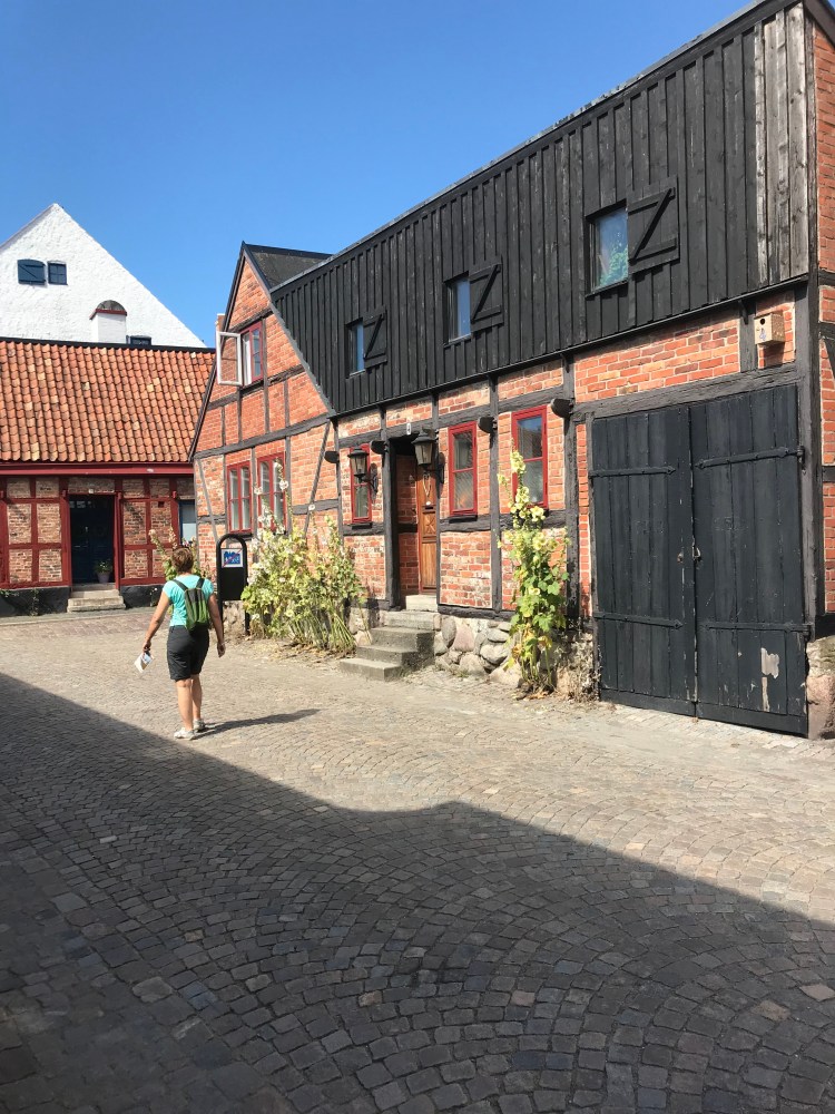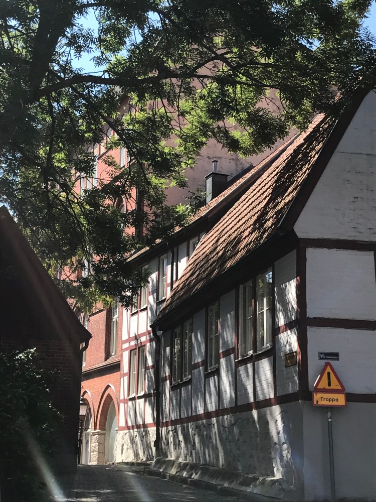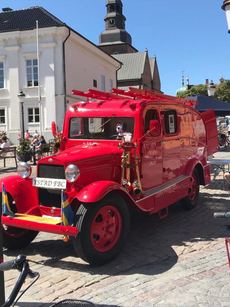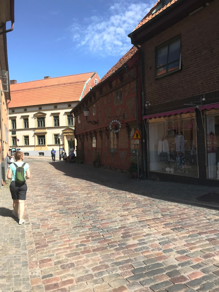 Initialement, notre planning prévoyait de longer la côte depuis le port de Trellenborg vers Malmö, mais le routard renseignait la ville d’Ystad comme une adorable petite ville médiévale parmi les plus anciennes et les mieux conservées de Suède. Anne a confiance dans le Routard, comme une nonne dans l’évangile. Moi, je suis plus Guide Vert mais je dois reconnaître que pour l’Allemagne du nord, le guide vert était très décevant. Avant, nous faisions des heures de marche d’approche pour aller dans le petit resto typique recommandé par le Routard pour nous y retrouver entourés de touristes français avec le guide sous le bras. Nous avons évolué et si je ne suis plus un intégriste du Guide Vert, Anne a émis quelques critiques sur le sacro-saint Routard. Bref, tout passe. Quand même, j’ai senti que pour Ystat, il ne fallait pas trop discuter devant les commentaires dithyrambiques du Routard. C’est un détour mais nous n’en sommes plus à quelques km près, nous qui en avons déjà fait près de 500 depuis une semaine.