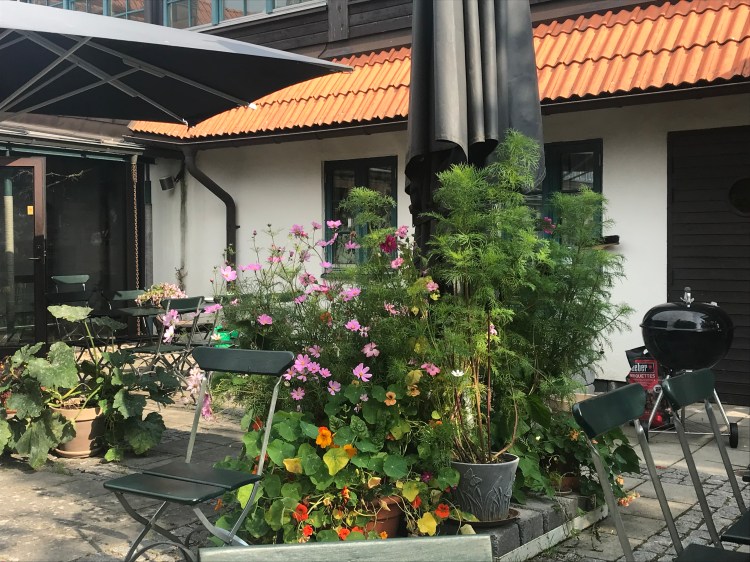 Skanör est située à la pointe Sud Ouest de la Suède. Effectivement, le chemin, l’eurovelo 10, est interminable. A tout moment, je m’attends à ce que Anne déclare forfait. Pour motiver la troupe, je propose une petite halte pour prendre une glace quand on trouvera un coin sympa. Nous arrivons à l’hôtel à 18 heures passées. Le seul reproche que j’entendrai est qu’il n’y a finalement pas eu de glace. Nous avons roulé près de 120 km. Anne souhaite rester sur son lit et ne plus bouger. Je parviens à la convaincre de descendre au bistrot de l’hôtel où on peut aussi avoir une assiette de crudités. Cela nous fait rencontrer la cheffe cuissot qui se trouve être également la cheffe jardinier (et nous avons sous les yeux un très beau jardin). Elle nous fait découvrir toutes sortes de préparations avec des légumes du jardin et des fromages locaux. Elle nous parle de Bruxelles et des bières belges. « Quand on sait respecter la bière au point d’inventer un verre pour chacune d’entre elle, on doit aussi savoir respecter les gens », dit elle. Nous ne pouvons qu’acquiescer. Elle nous présente des assiettes composées pour être A taste of the traditional swedish cooking. Elle nous offre l’indispensable aquavit qui accompagne la bière et les harengs marinés. Une très grande expérience gastronomique. A la fin du repas, Anne a les yeux dans le vide. Elle se hisse jusqu’à la chambre et s’écroule sur son lit. Jusque là, je me suis efforcé de sauver les apparences. Maintenant, je puis me laisser choir à mon tour.