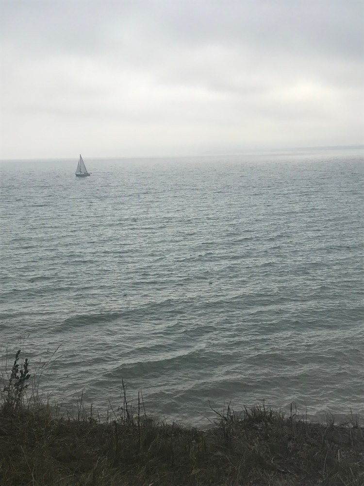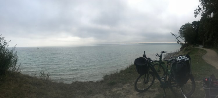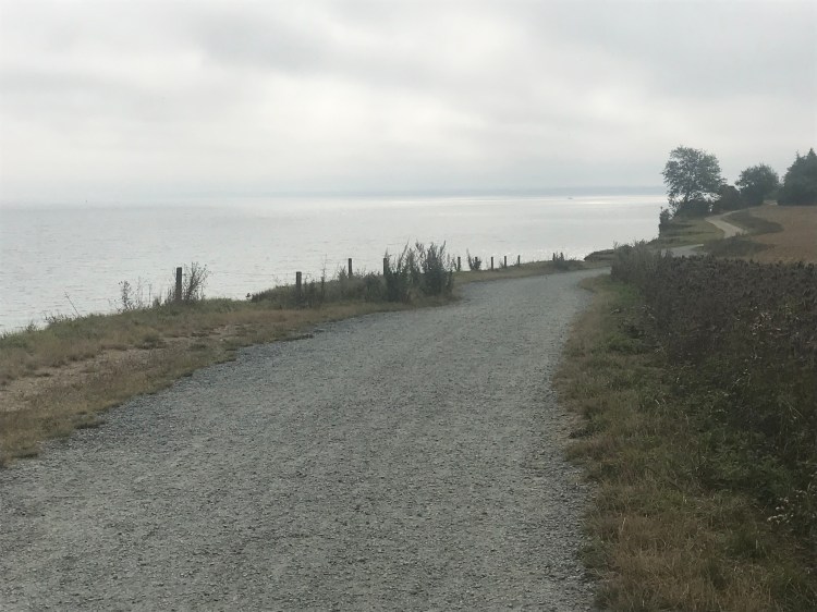 Il fait gris ce matin. Le chemin nous conduit par de petits sentiers le long de la Baltique jusqu’à Travemünde. De très belles perspectives sur la Baltique.