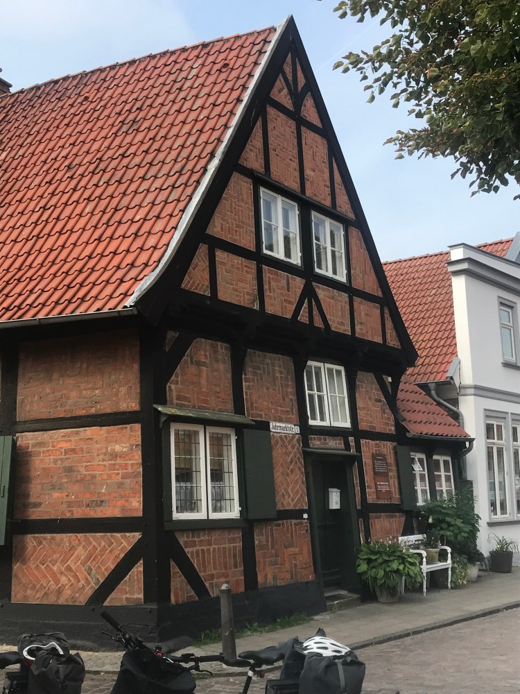 Ce lundi, nous démarrons pour notre dernière étape. Nous devons rejoindre Wismar où nous avons laissé la voiture. Nous l’avons laissé sur un vaste parking public en plein air et je m’en suis voulu après coup, de ne pas même avoir laissé une indication avec mon numéro de téléphone sous le pare-brise. Sait-on jamais ? Si la place est réquisitionnée pour un événement (un cirque ?) ou un marché… Comme pour beaucoup de pensées et d’inquiétudes sur la route, je me suis entraîné à la laisser de côté. Il n’était rien que je puisse faire (sauf à faire demi-tour) et le lâcher prise était la seule manière de conserver la sérénité. Nous partons de bonne heure parce que pour tous ces trajets, en suivant le vélo route de la Baltique très sinueux, le calcul du kilométrage est très approximatif. Il faudra peut-être encore loger en cours de route.
